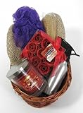 Christmas Scented Candle.Slippers.Rose Scented Bath Petals.Exfoliation Bath Scrunchie.2 in 1 Foot File & Brush. Slippers, Christmas Scented Candle, Rose Scented Bath Petals, Exfoliation Bath Scrunchie, 2 in 1 Foot File & Brush.Presented in a basket.
