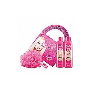 Barbie® gift set including Barbie® Shampoo 200ml and Barbie® Body Wash 200ml with body scrunchie. Comes in a Barbie® branded card bag.